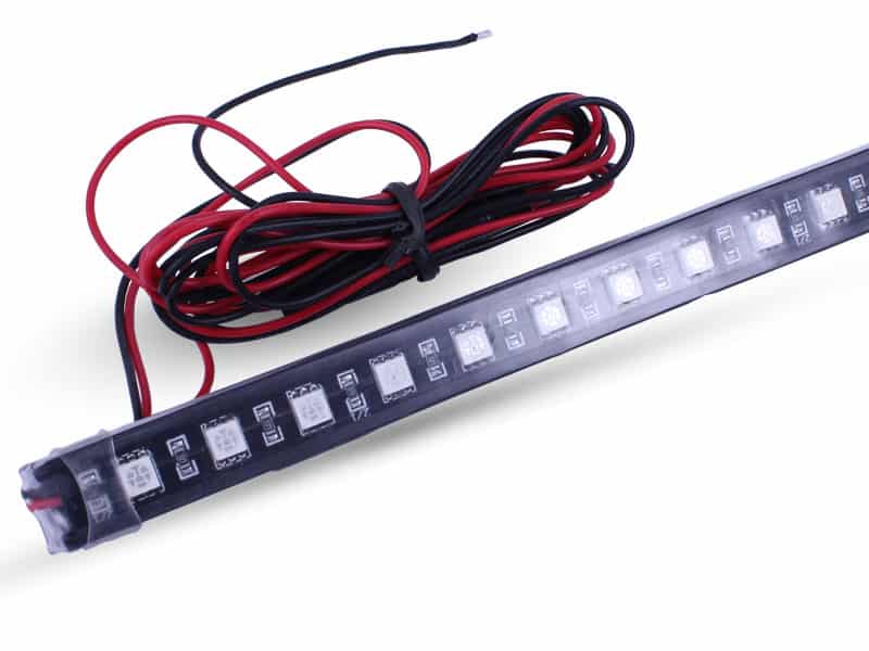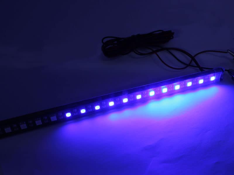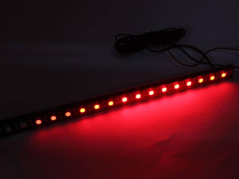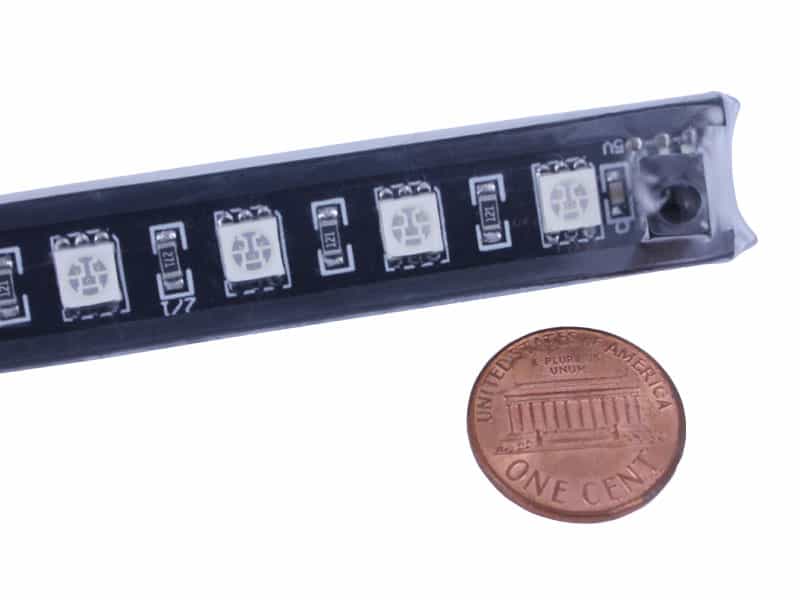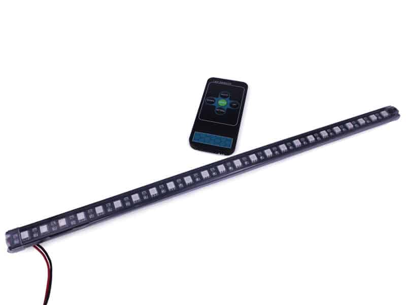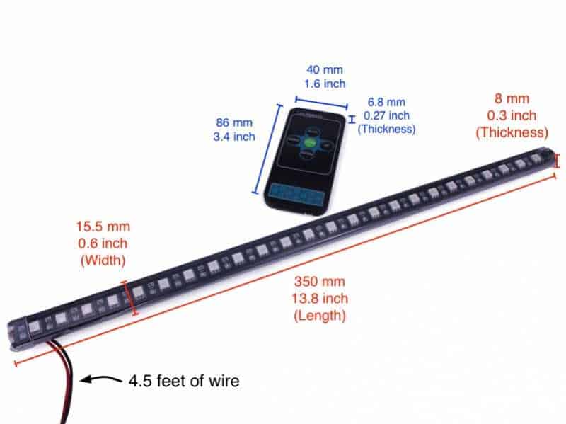 It has 24 premium 5050 size LEDs, which give you the greatest BRIGHTNESS! 7 colors and 23 patterns are at your fingertips with the included remote control. Straight, slim and with a black aluminum body make it cool and durable. Easy installation. Just hook it up to a 12V supply and place it anywhere you'd like.