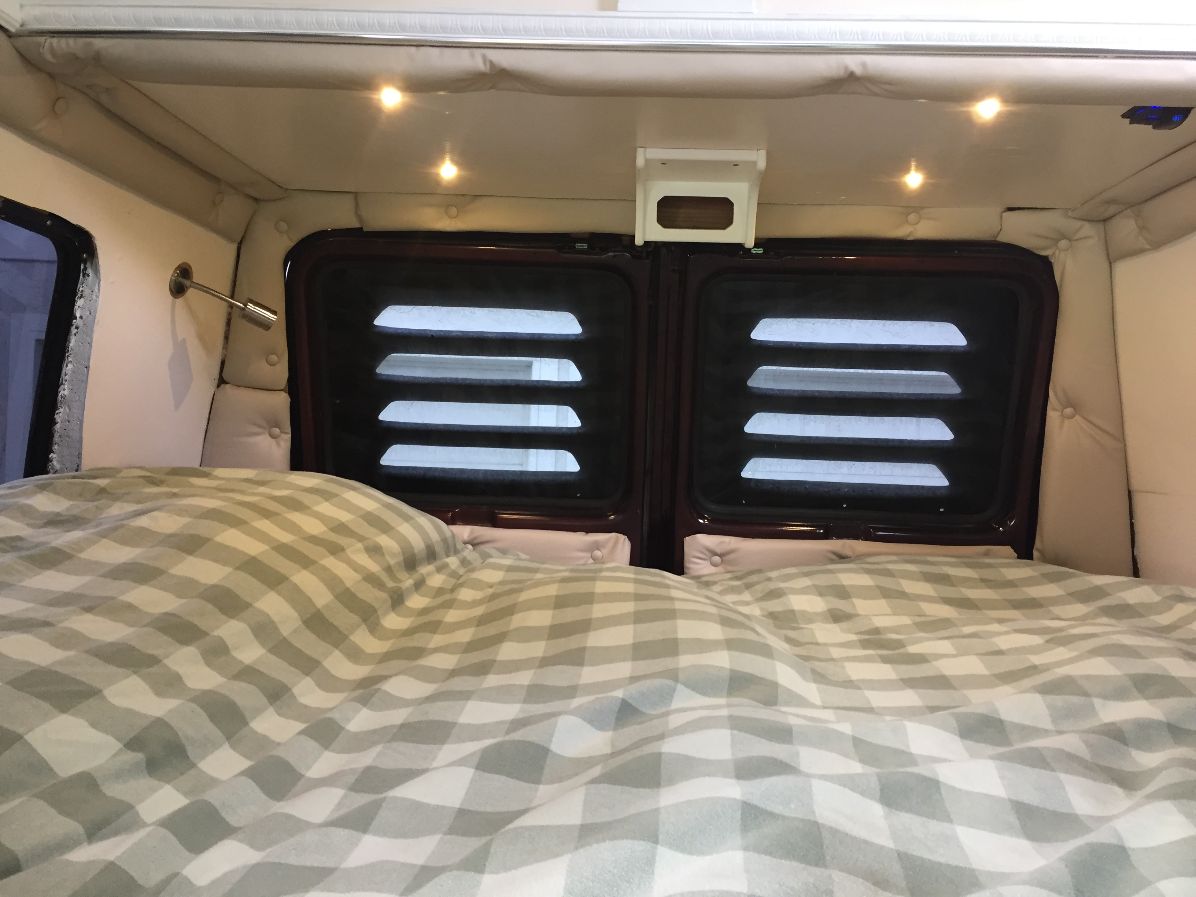 The customers wife often sits on the bed with her laptop on the bed of their Chevy van. The ceiling above the bed had no LED lighting or USB port and they needed to be installed.