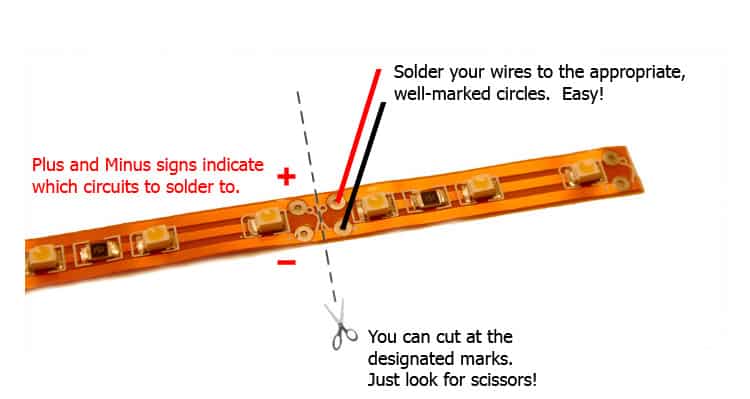 You might think soldered wires wont stick so securely to something as thin as super thin ribbon LED strips, but as long as your solder is smoldering hot, and your wire ends get encased in the solder, it should hold perfectly!
