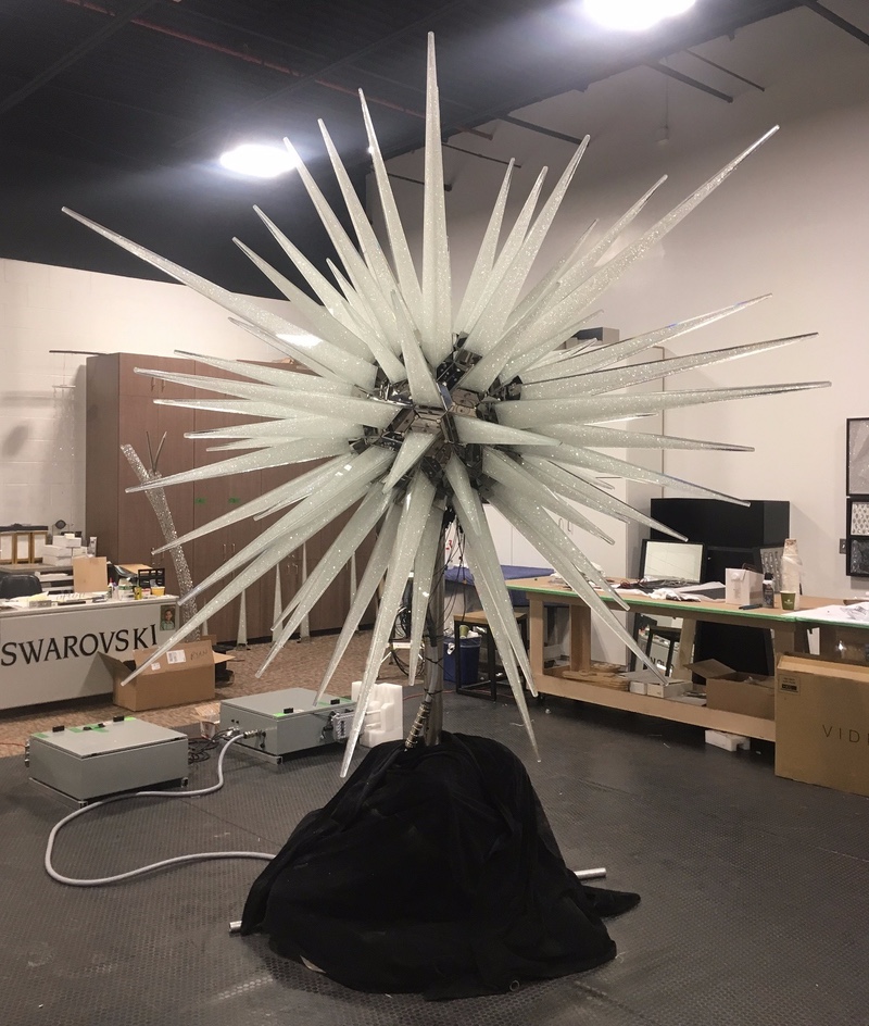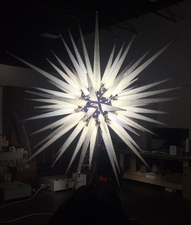After all of the LEDs were mounted and tested, the next step was to assemble each and every one of the 70 spikes of the star. This was also a tedious process, and those who installed them had to be super careful to not destroy any of the fragile Swarovski crystals. Just imagine the cost if one of the spikes were dropped or broken. But luckily they are professionals, and everything went smoothly.