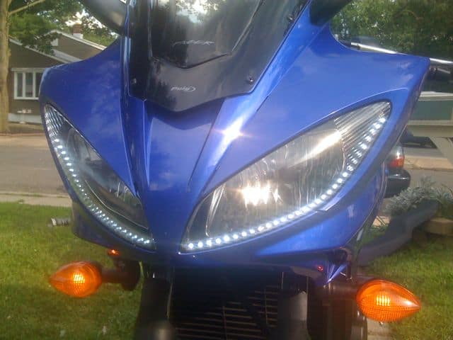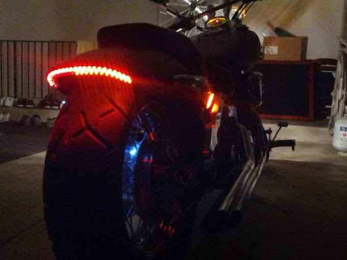 Very bright and very cool (literally, no heat output!), these strips, which sell for as little as $3.99 each, give you total lighting flexibility on your motorcycle or bike, while the small power footprint will little to no drain on your battery due to the super efficiency.