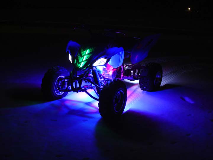 Oznium LED strips put out a minimum amount of heat, so there's no fire risk, and they'll fit in a variety of places:- wheel or ground effects