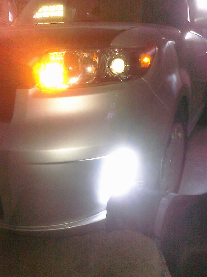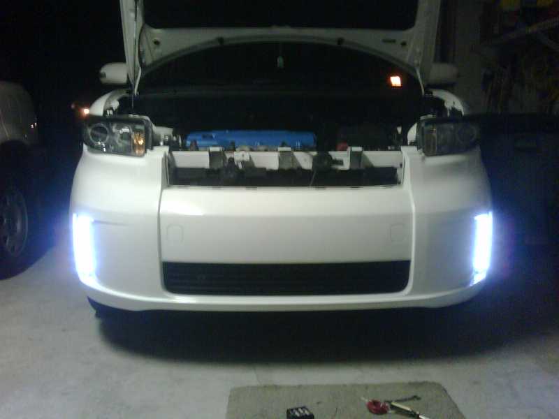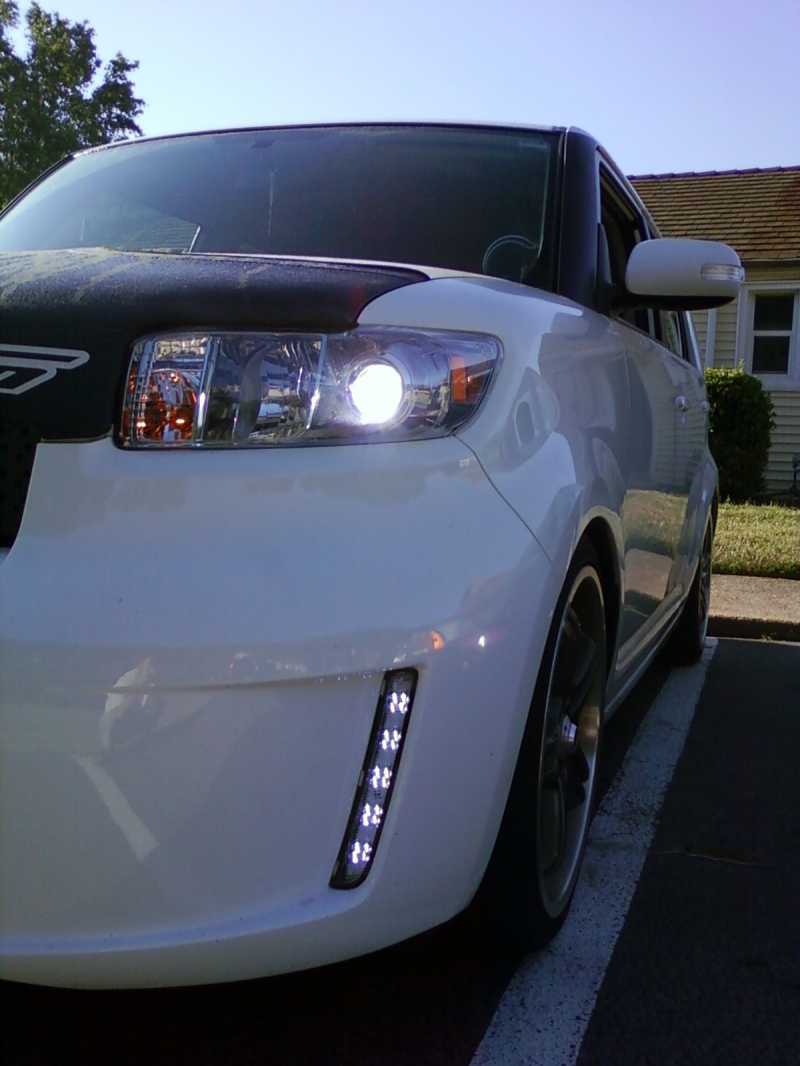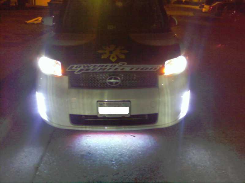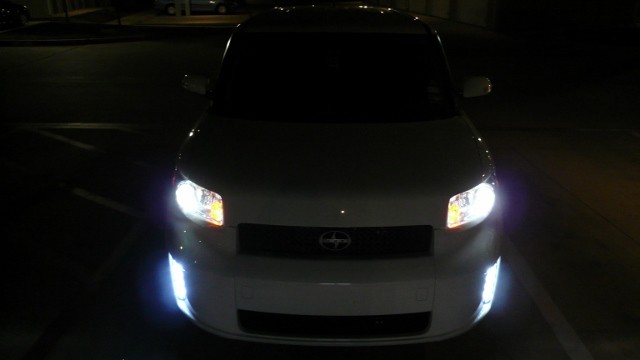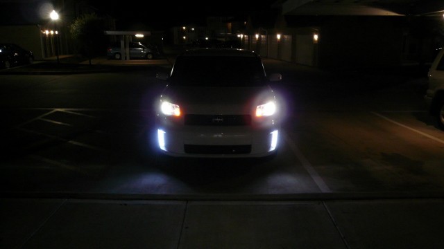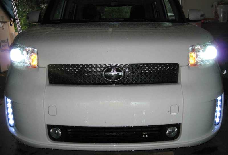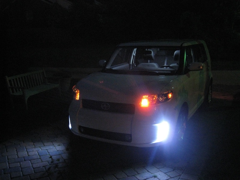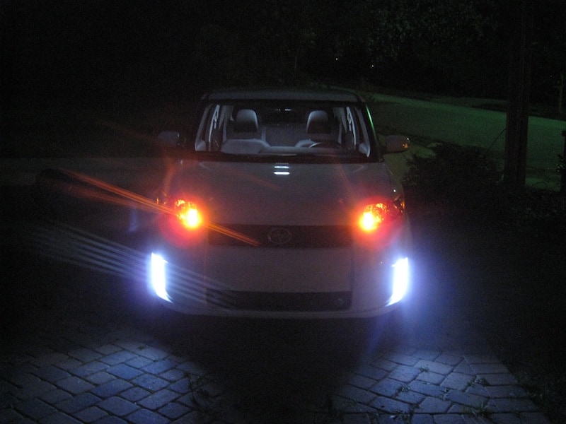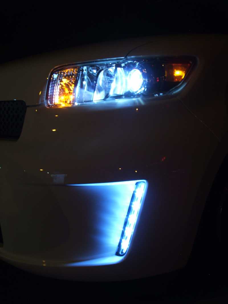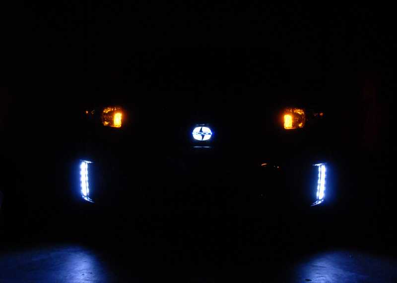The vertical LEDs fit perfectly on the Scion xB’s distinctive front bumper and are able to cast a noticeably more imposing light than the standard set of fogs, for which they are not a direct replacement! In fact, the LEDs can be used in a number of different ways, including being set up as running lights, signal lights or complementary fog lights.