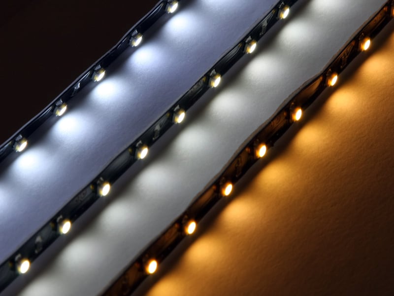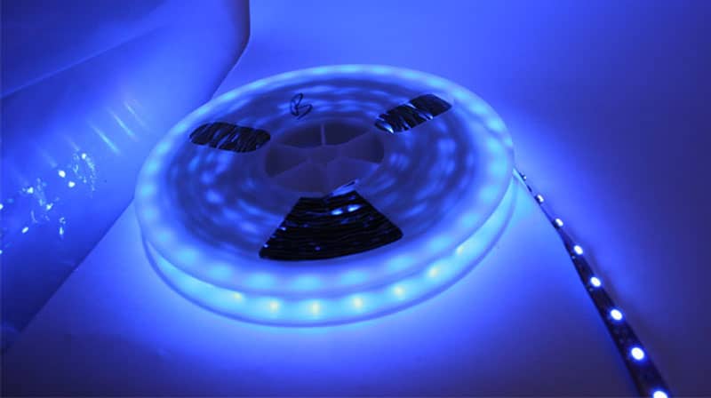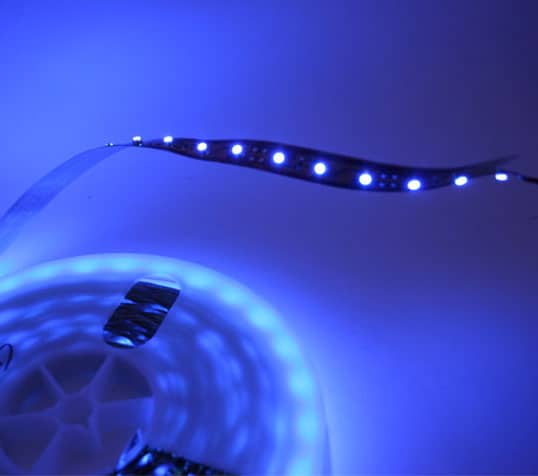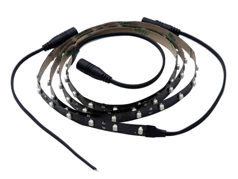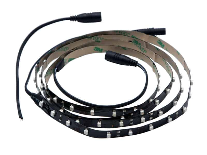 These strips are amazingly bright and are available in blue, green, red, 3 shades of white, amber, UV blacklight, and a million color version!