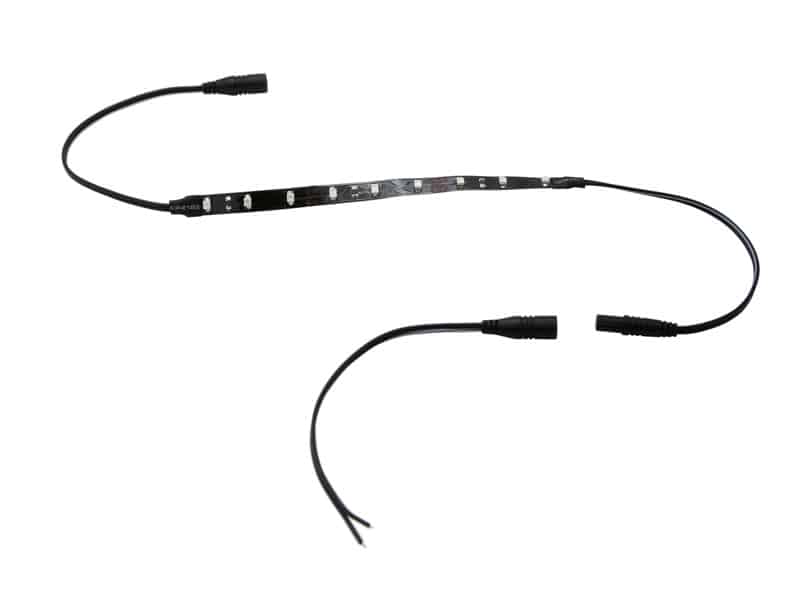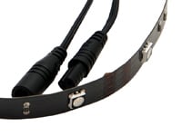 Need to make it shorter? They can be cut every few inches (or between every 3rd LED). The all-black circuit board offers an elegant aesthetic, especially for installations where the strip may be directly visible. Each end has pre-attached power wires. You only have to hook up one end. The other may be used to extend the strip. Simply plug another one in! Hook the wires up to your 12V power source. One is indicated with a white stripe, for positive, and the other is all black for negative. You can easily connect multiple strips of any length together by plugging them in together with the quick disconnects.