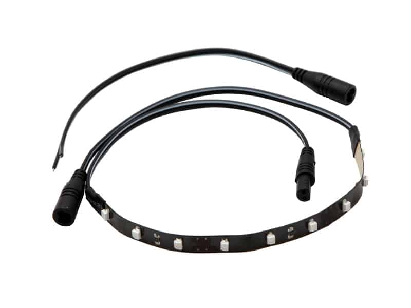 These 12-volt-ready Ribbon LED Strips are sold in pre-wired lengths with power connectors on both ends so you can easily daisy-chain them together. No soldering required. The wires are already attached to the strip - simply plug and play.