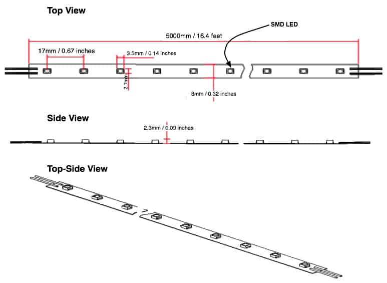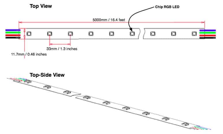 These strips are amazingly bright and are available in blue, green, red, 3 shades of white, amber, UV blacklight, and a million color version!