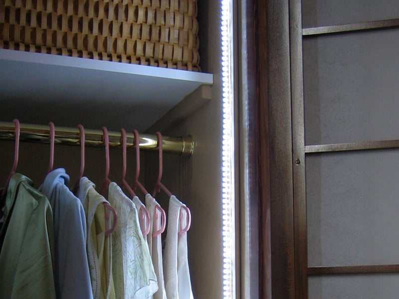 - Keep your closet organized with lights around the baseboard