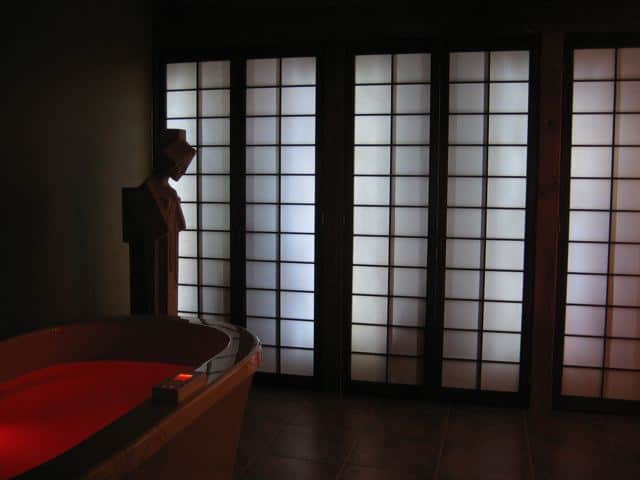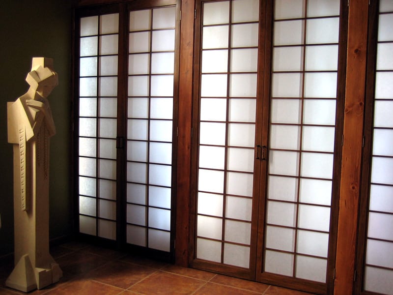 - Behind frosted panels