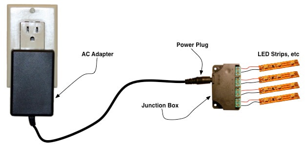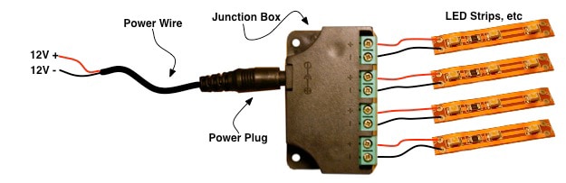 This is a junction box that will easily connect the power from your 12 volt adapter AC Adapter to any Oznium product. With Oznium's junction box you will bypass any tedious hours soldering and get straight to the point!