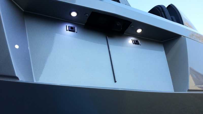 The flush mounted Oznium Bolt LEDs solved all that. I mounted them in the bow handle and they face forward while still producing a great amount of light to make me visible on the water.