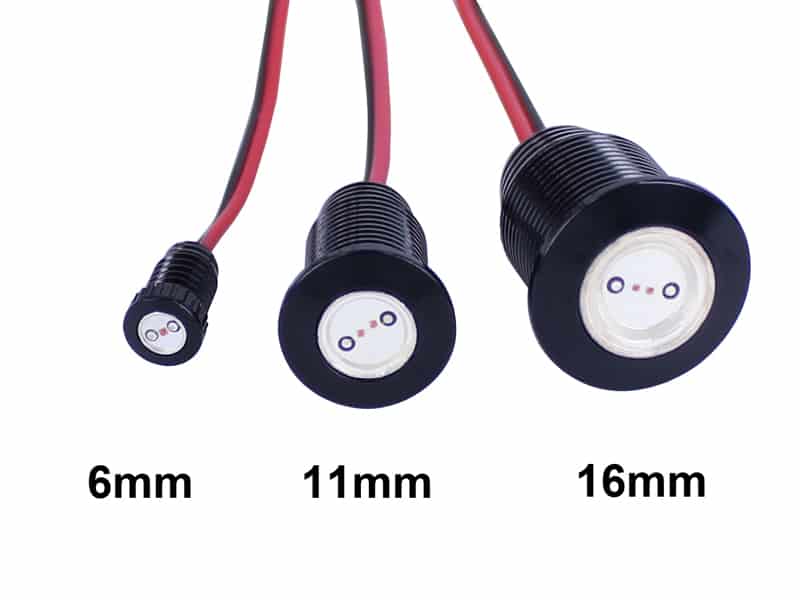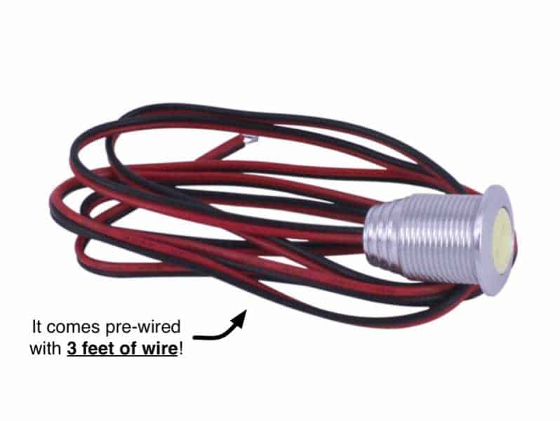 If I could offer suggestions on how to improve the product, I would suggest a larger diameter wire. I had to tin the ends with solder to make them acceptable for a red 18-22 gauge solderless terminal. I think I would go with a hex nut as well rather than the knurled nuts. The double nut is good though as the second one acts like a locknut. The ultimate would be a black face on the front to make them almost invisible. I would have purchased the stainless steel rather than the aluminum if they were offered in black. I believe these had a better wiring whip on them, but I wanted the light to be almost invisible, nothing shiny.