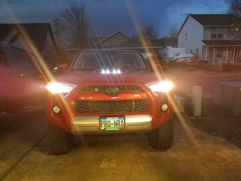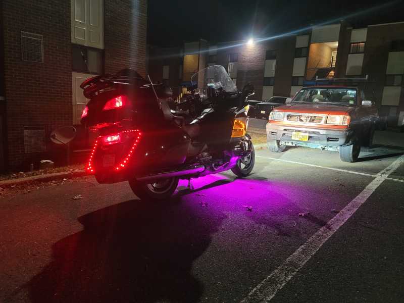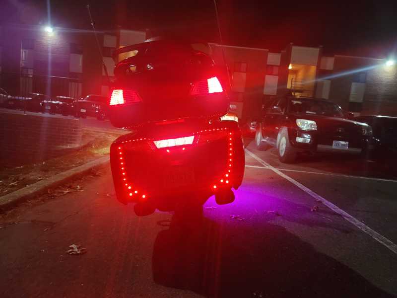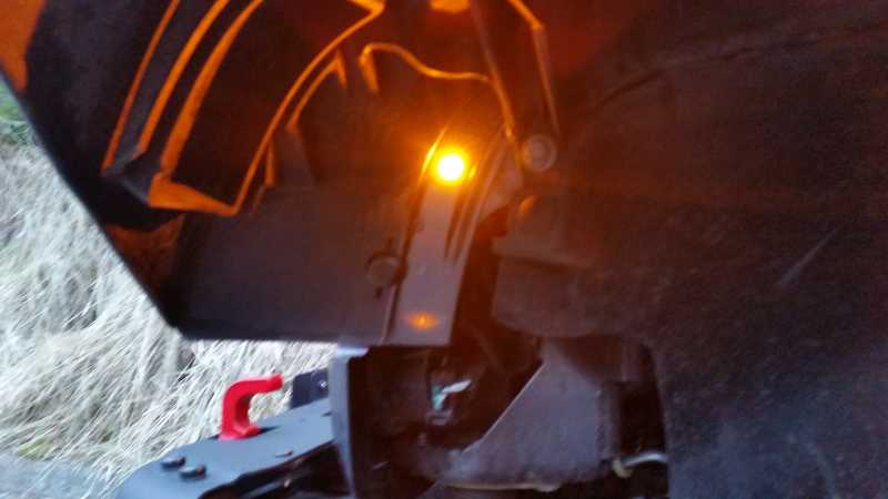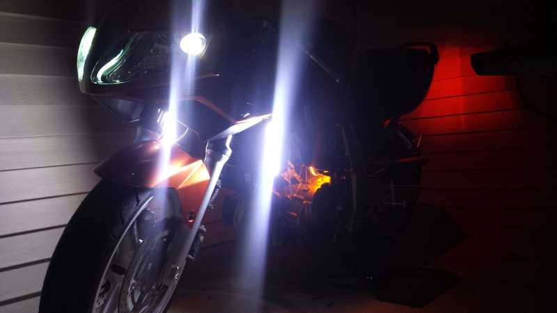 I run 2 of the amber 6mm bolt LEDs on both sides of the bike as running lights, also on the wireless controller. After the sunsets is when I use the running lights, so that I'm more visible to cars from the sides and the rear.
