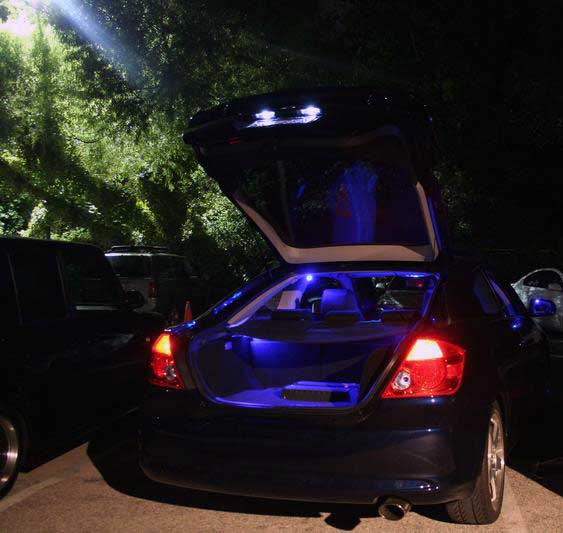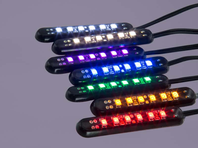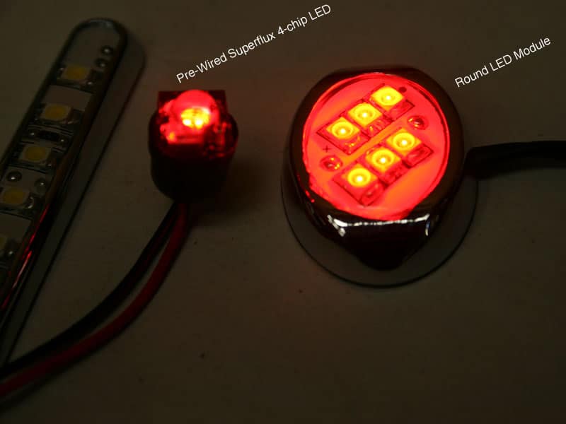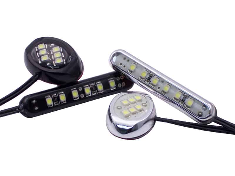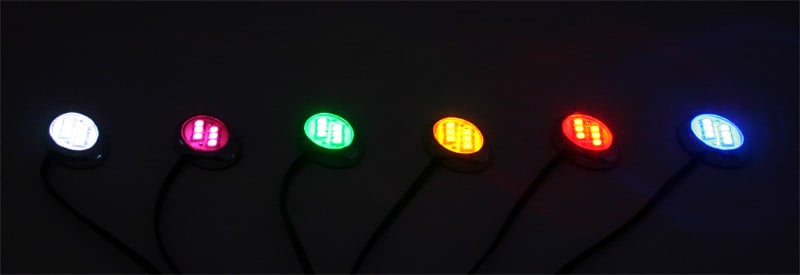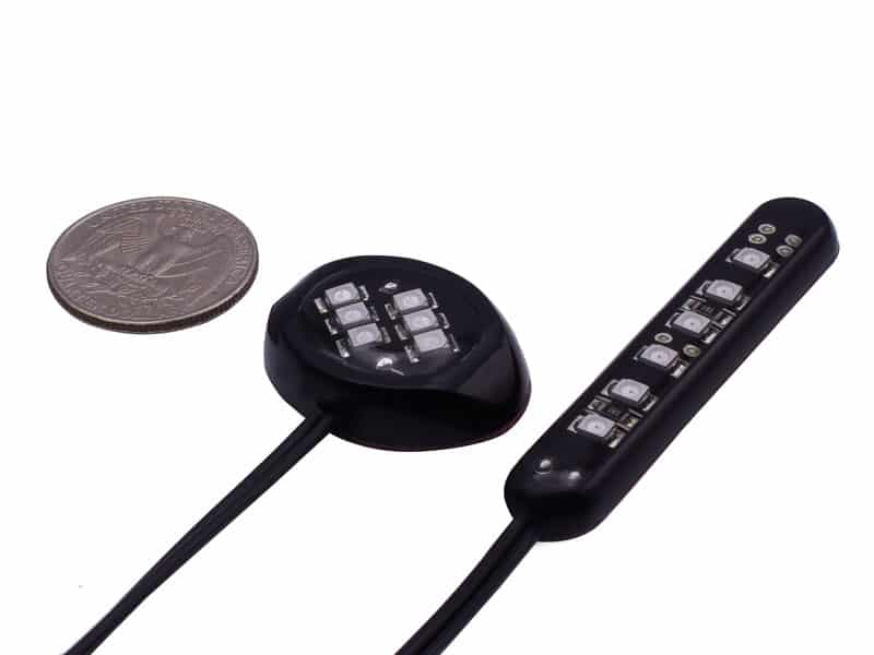 Like an LED puck light, they are perfect around the house or in the car. These tiny wonders are fully waterproof, can be mounted with the included 3M adhesive, and easily hook up to any 12 volt power source.