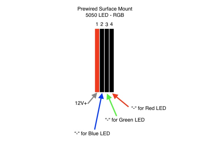 Using an RGB Controller ? - (Million Color / Rainbow) We've got you fully covered. The LED module has 4 wires, a universal common positive, and three negatives. (If you receive the led with one red and three black wires, the red wire if the hot lead; the black wires are the blue, green and red in that order starting from the black wire next to the red wire.) We've got a handful of LED Controllers to choose from, including our most popular Freedom Controller if you don't already have an RGB / Rainbow LED controller.