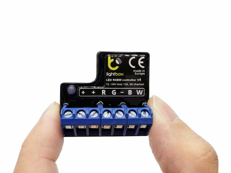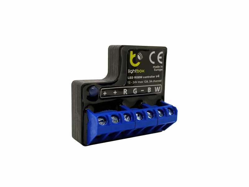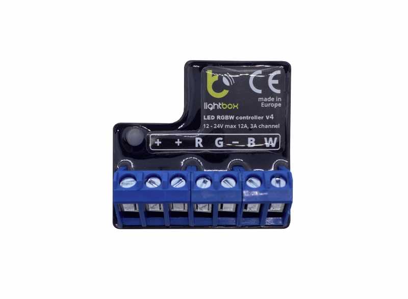 LightBox RGBW Bluetooth Controller v4 is a wireless smartphone LED controller using the latest Bluetooth 4.0 LE technology. Its sleek and "out of the way" design, meaning it can be installed in a small space and easily hidden. With the BleBox app, you can choose from an almost infinite number of colors and effects directly from your phone. It consumes very small energy (<1W) but can give you a very stable connection.Product Features: