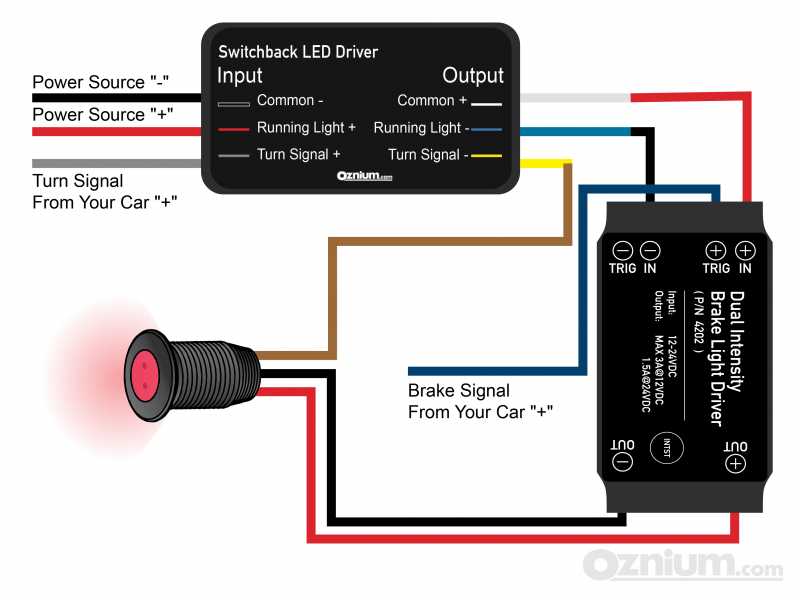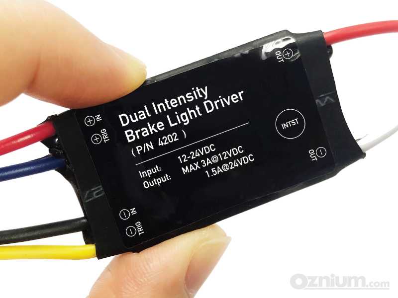 Oznium's Dual Intensity Brake Light Driver is designed to enable your additional LEDs to function with a dual intensity feature, allowing them to be used for brake applications. This makes it perfect for enhancing the brake systems of cars and bikes.