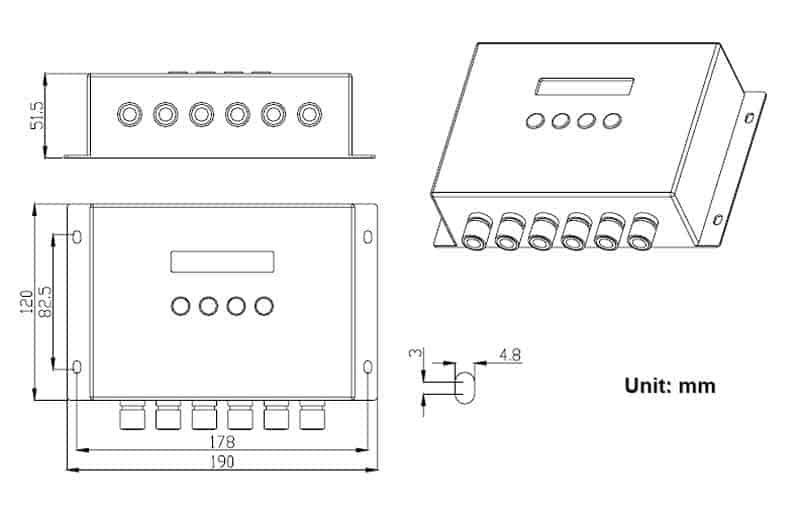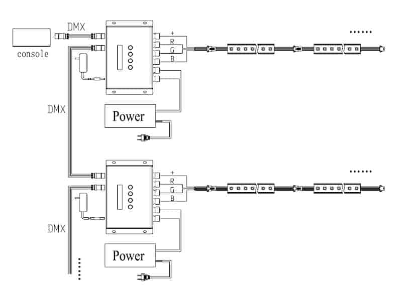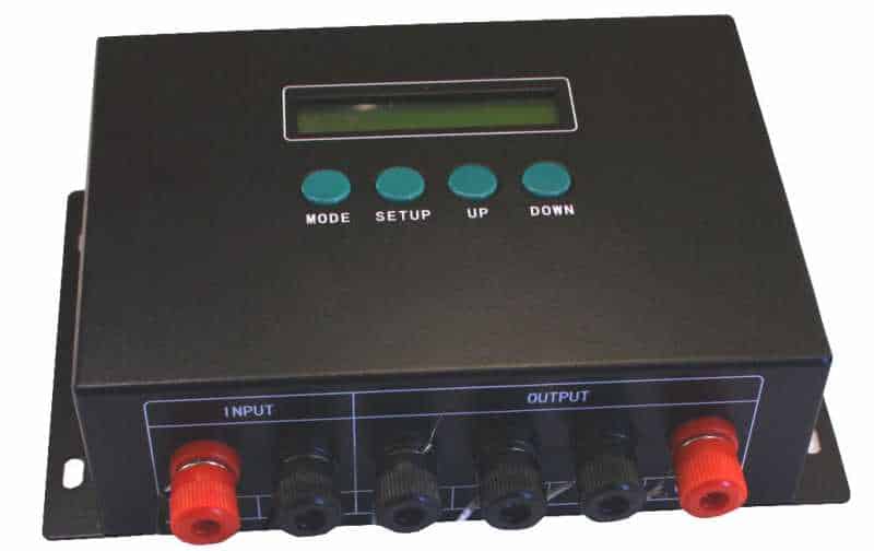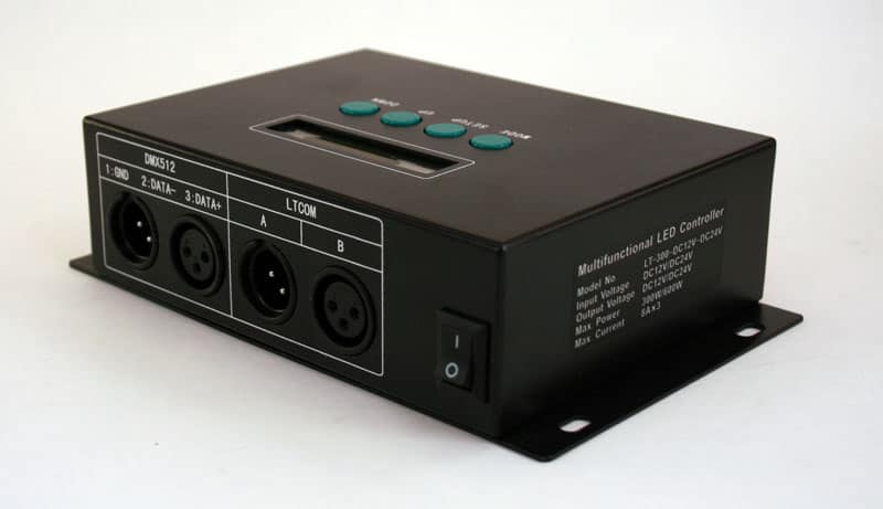 The Common Positive Multifunctional LED controller houses a high powered microcomputer which supports DMX512. This high powered LED controller controls the design and run speed of more than 30 settings. It allows the LED's to be dim-able from 1 (very dim) to 100 (exceedingly bright). This controller gives any user full lighting manipulation to meet almost all applications needs by allowing its users to control all colors, hue, and brightness of the LED's.
