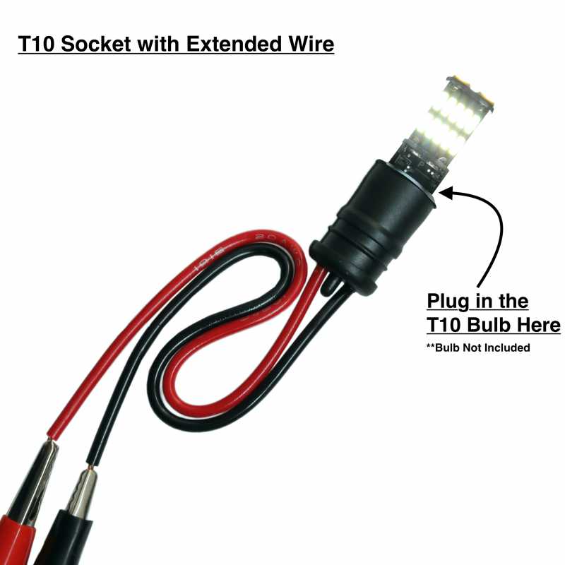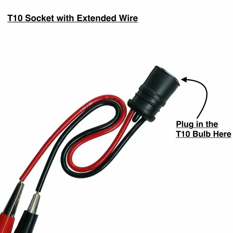 The "T10 Socket with Extended Wire" is designed for hooking up the T10 bulb from any power source. The T10 Socket comes with red black bare wires, you can hook up the T10 bulb as above pic showed: