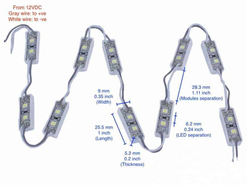 | Dimension (per module) | 9mm (L) x 25.5mm (W) x 5.2mm (H) |