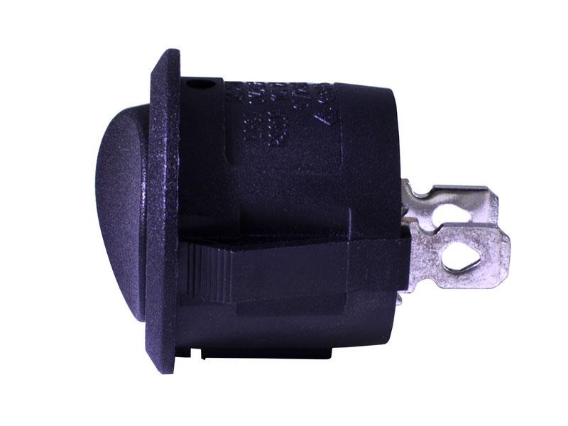 These are small, round momentary rocker switches. A momentary switch means that it is only connecting the circuit while you hold the switch - the rest of the time the circuit is not connected. When you let go of holding the switch in the "on" position, it will automatically jump back to the "off" position.