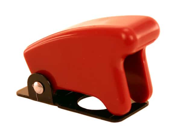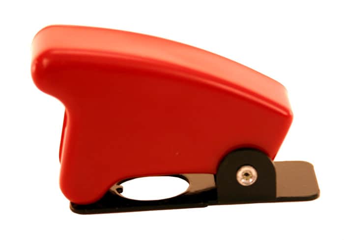 Materials: Base faceplate is black steel; cover is red urea plastic.