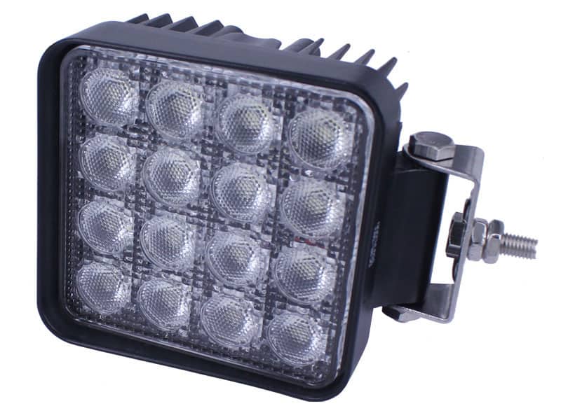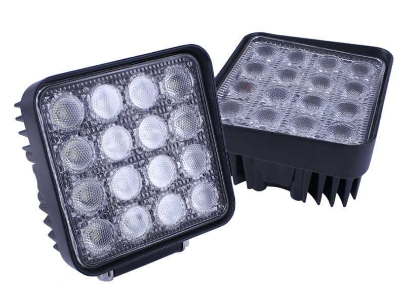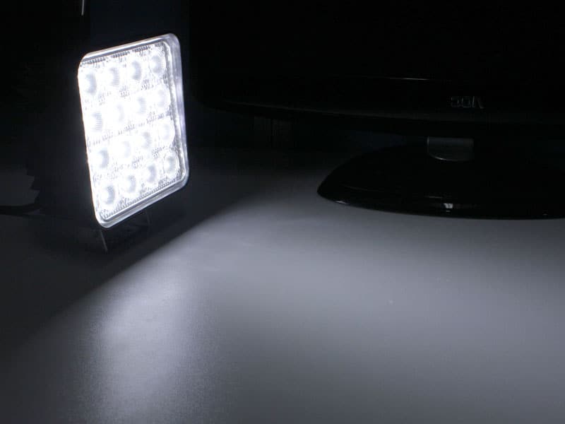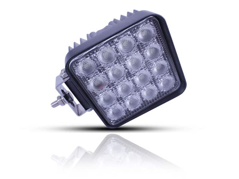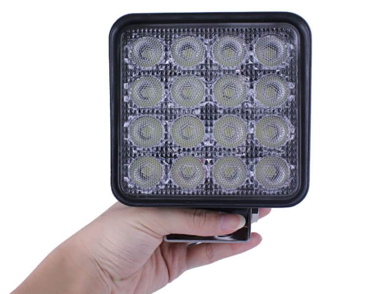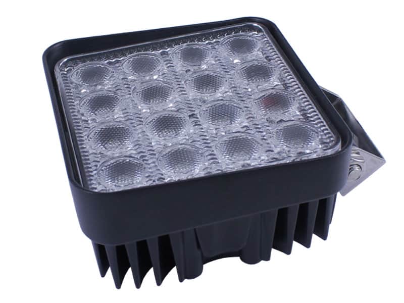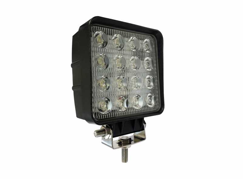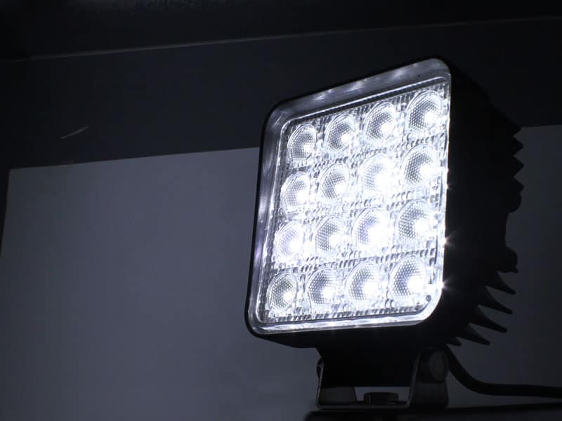 You can now experience super bright illumination with our 48W LED work light. Sixteen pieces of 3W LEDs are arranged in an orderly, attractive pattern, giving you a very high intensity of 1800 lumens. Highly efficient, with a rigid, strong appearance! Compared with a normal halogen bulb, it has much stronger light transmission rate but less heat.